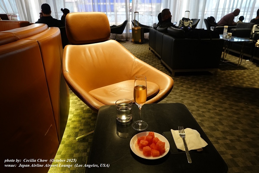 airport lounge in Los Angeles before my flight's departure to Japan
