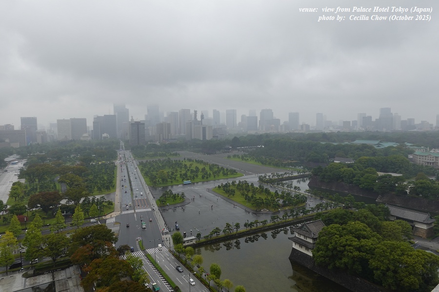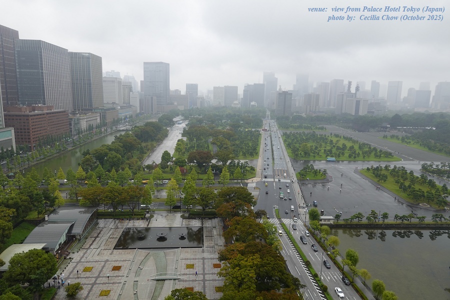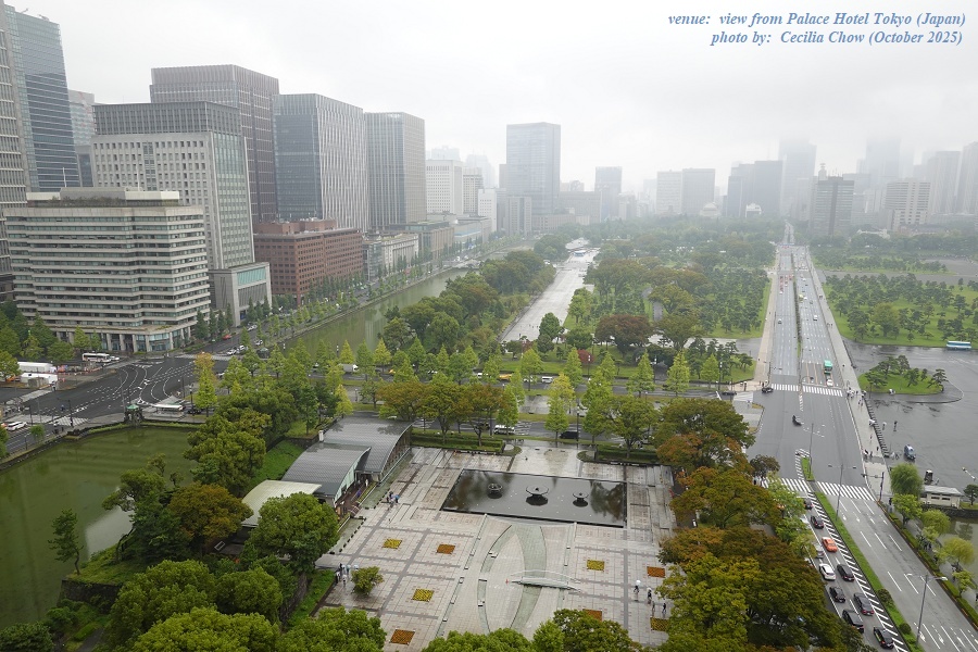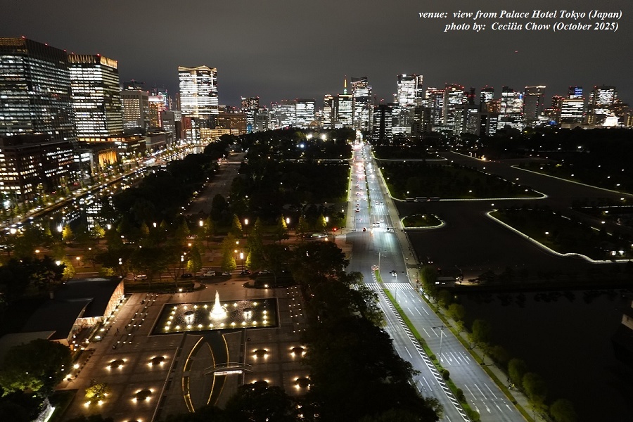 Palace Hotel Tokyo, day & night views from my hotel suite towards Hibiya Park.
